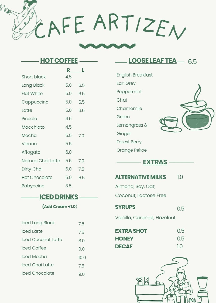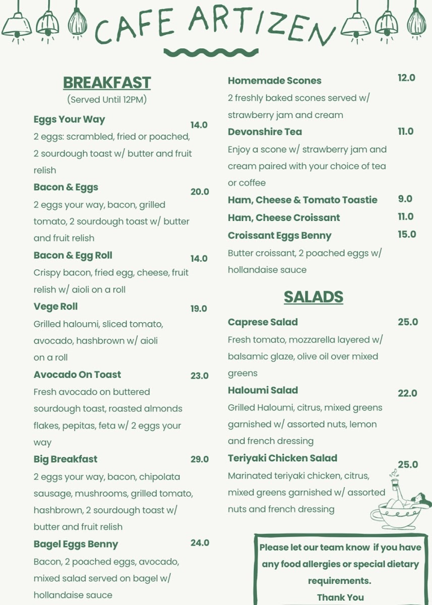 Visitors can expect a menu suitable for light meals and casual dining, accommodating breakfast, lunch, or a midday break. The structure allows for quick ordering with clear categories and options for customization within the available selections.